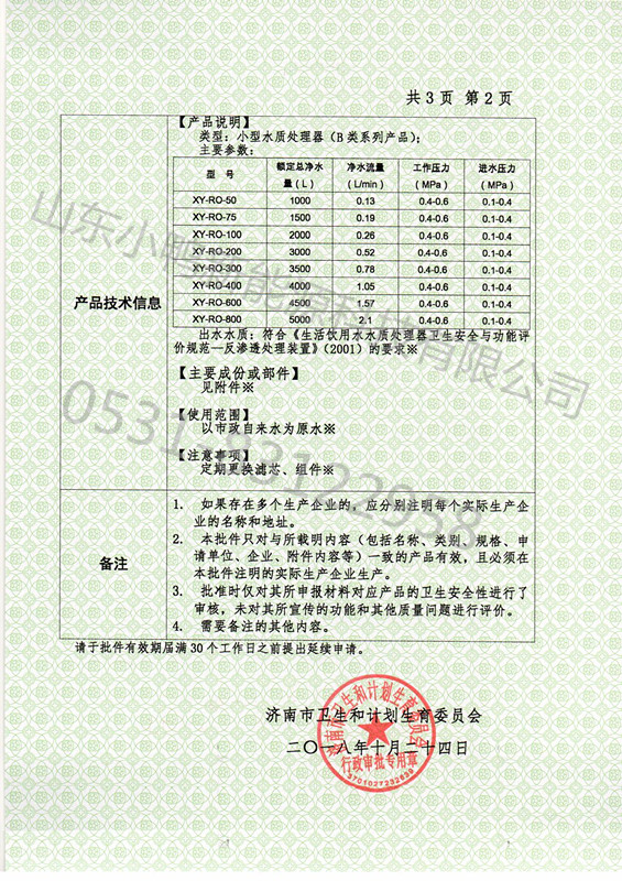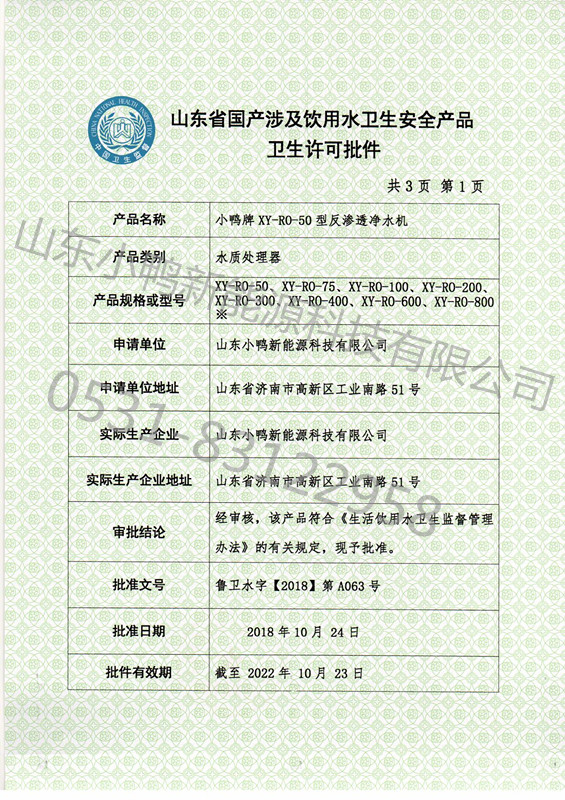 瀏覽量:0近日,小鴨牌XY-RO-50型反滲透凈水機和小鴨牌XY-UF-01型超濾凈水機,包括XY-RO-50、XY-RO-75、XY-RO-100、XY-UF-01、XY-UF-02、XY-UF-03等型號的凈水器,已更新涉水批件。批準文號:魯衛(wèi)水字【2018】第A063號和魯衛(wèi)水字【2018】第A064號。