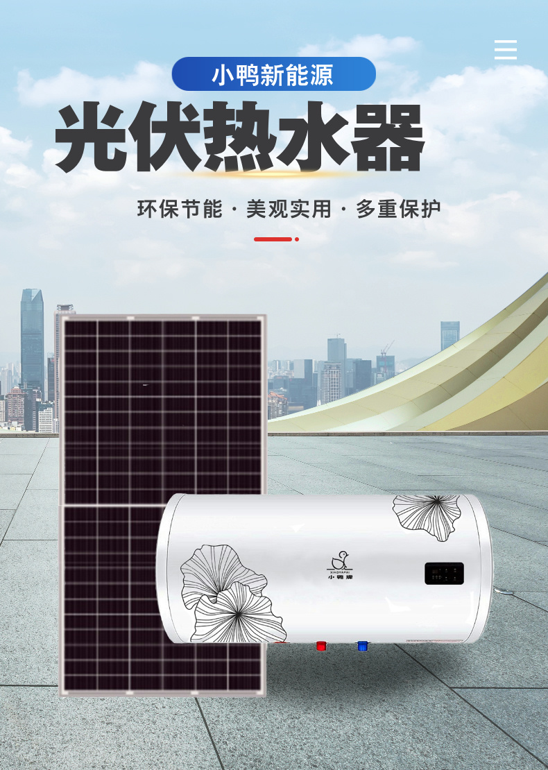 通過(guò)光伏板組件將太陽(yáng)光的光子能量轉(zhuǎn)換成電能。這些電能隨后被用于加熱熱水器中的水。具體來(lái)說(shuō),當(dāng)光線(xiàn)照射到光伏板(主要由多晶硅等能產(chǎn)生光伏效應(yīng)的半導(dǎo)體材料制成)表面時(shí),光子能量被硅材料吸收,導(dǎo)致電子發(fā)生躍遷,形成自由電子并產(chǎn)生電位差。通過(guò)外部接通的電路,電流在電壓的作用下流過(guò)電路,產(chǎn)生一定的輸出功率,進(jìn)而對(duì)水進(jìn)行加熱。
